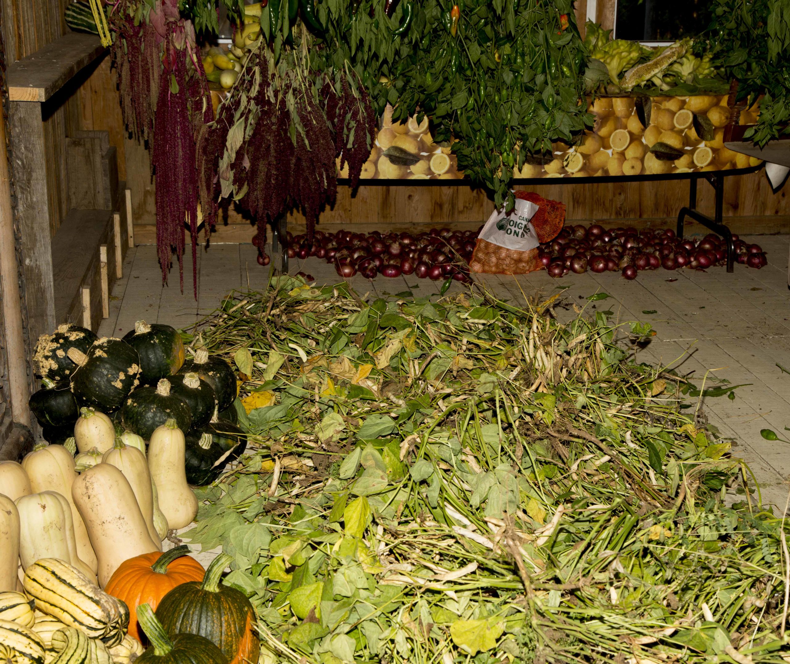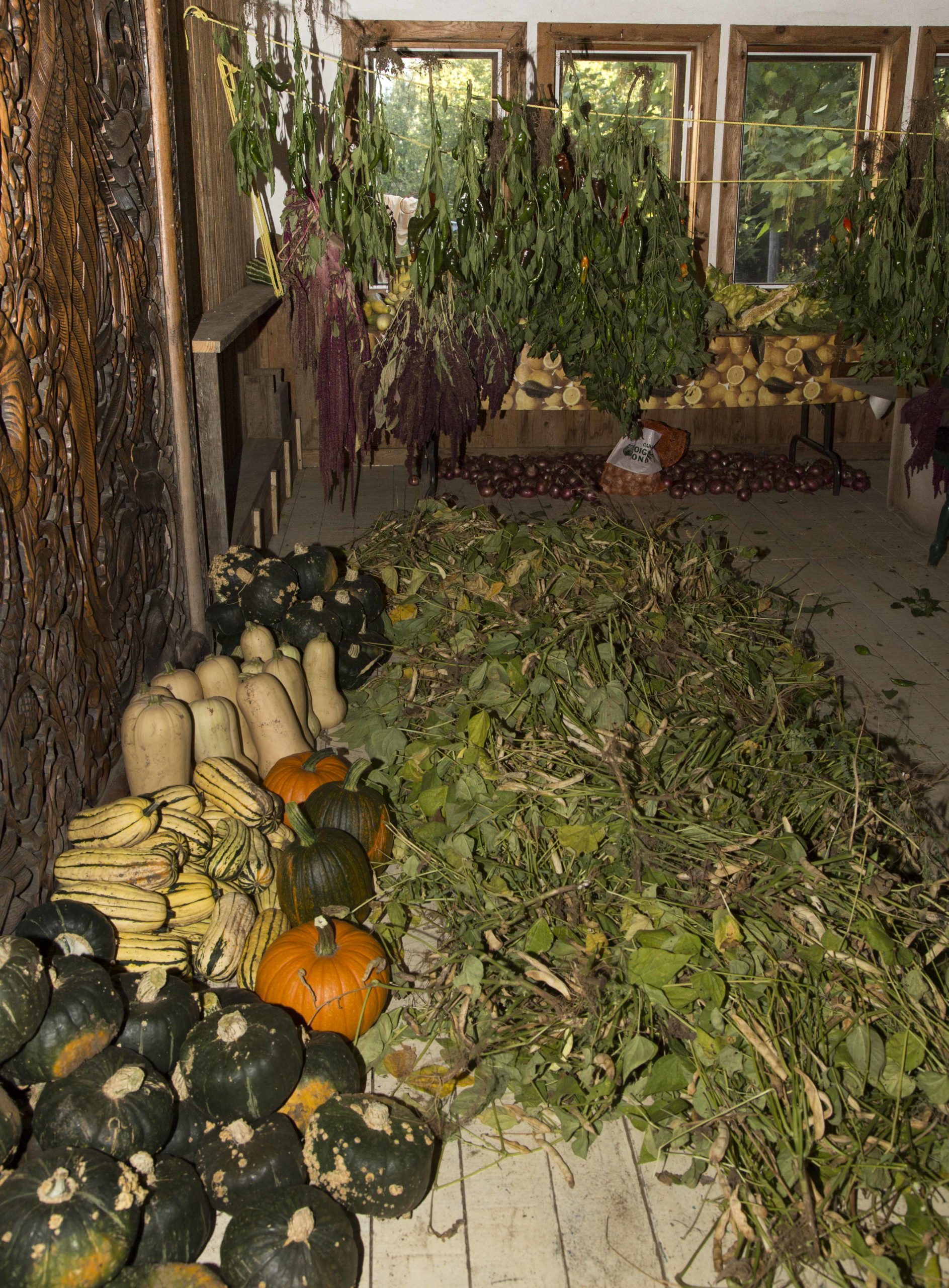 Plusieurs personnes de mon entourage arrivent à vivre des fruits de leur labeur et je les honore énormément pour tout le travail qu’ils font dans leur jardin. Quand je les côtoie, je prends d’abord conscience à quel point ils sont en santé et qu’ils sont resplendissants, mais plus que tout, c’est la belle lumière qu’ils dégagent qui vient me chercher. Faut croire que de travailler les mains dans la terre rend heureux! Voici une photo de ce qu’à l’air une pièce qui engrange des récoltes. C’est beau, c’est vibrant et ça sent bon en titi!!!